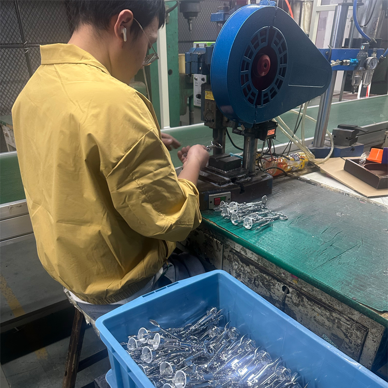 コークスクリュー全体は、組み立てという最終工程に達します。まず、加工されたすべての半完成部品を部品の種類ごとに分類します。品質管理(QC)担当者が予備検査を実施して、これらの半完成部品が機能、色、表面品質のすべての製品仕様を満たしていることを確認します。その後、合格部品と不良部品を分離して個別に管理します。検査報告書が作成され、生産部門と倉庫部門の両方に提出されます。確立された製品仕様マニュアルに従って、合格した半完成部品は在庫と保管場所に保管されます。その後、組み立てのために生産ラインに入ります。