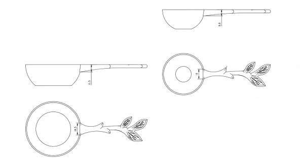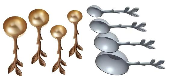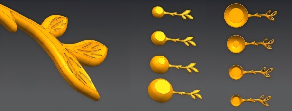 まず、これまでの経験に基づいて、製品の形状と使用可能性を評価しました。主な材料として亜鉛合金を使用し、材料の密度と表面特性を計算し、人間工学を取り入れて、4つの計量スプーンまたはアイススプーンの全体の寸法を設計しました。その後、これらの寸法に基づいて、各曲線、R半径角度、その他の細かい詳細を調整しました。