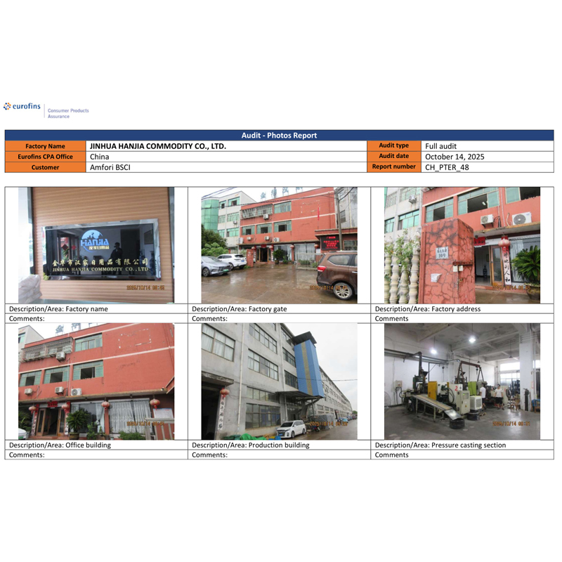 金華漢家商品有限公司はBSCI監査の結果を発表しました。10月14日、同社は専門評価に合格し、顧客が指定した最低要件を満たすクラスC認証を取得しました。この認証の有効期間は1年間です。BSCI監査は顧客が選択したEUROFINS代理店によって実施されました。この顧客は長年にわたり当社からワインオープナー、ワインアクセサリー、カクテルシェーカーなどのステンレス製品を購入していただいています。顧客の国はサプライヤーにこの認証を取得することを要求しています。