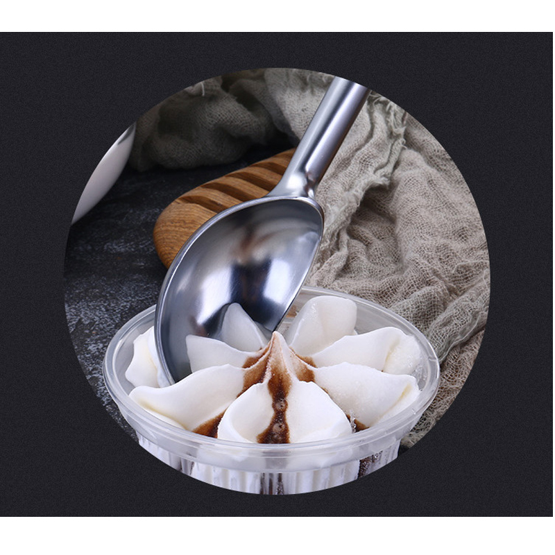 この亜鉛合金アイスクリームスクープは、プレミアム亜鉛合金から継ぎ目のないダイカストで作られ、快適なグリップハンドルを備えています。このスクープは、鋭利な角のない滑らかな輪郭のエッジを備えており、快適で丸みのあるグリップ体験を保証します。長さ16.5cmにも関わらず、スクープの重さはわずか75グラムです。これは、6段階の完全に手作りされた生産プロセスのおかげです。表面は高温焼き付け仕上げ(120℃)でコーティングされており、耐久性がありながら羽毛のように軽い構造です。スクープヘッドは、凍ったアイスクリームを楽にスライスできる、独自設計の108度の外向きの先端を持つオープンボート形状を採用しています。スクープヘッドの両側には、本体よりも低い曲線が伸びており、滑らかなアイスクリームを取り出すための波形の起伏を形成しています。この考え抜かれた設計により、スキルレベルに関係なく、誰でも簡単に使用できます。